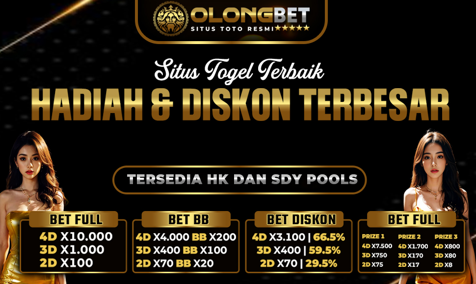 OLONGBET Agen situs togel menyediakan pasaran togel terbaik sdy pools dan juga di jamin aman terpercaya dengan minimal bet togel 100 perak bebas invest dan juga hadir dengan 4 tipe bet togel terlengkap seperti bet diskon, bet full, bet togel prize 123 dan juga bola balik pastinnya di bayar.
